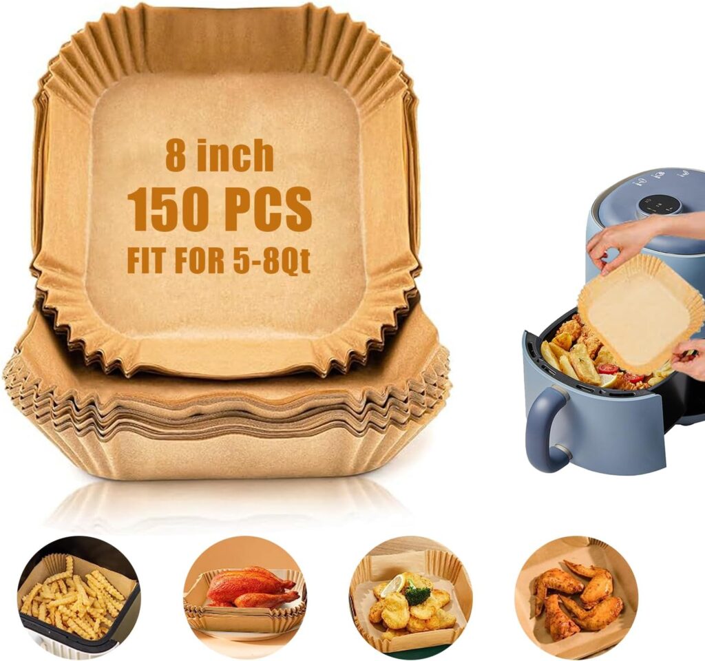 Air Fryer Paper Liners, 150 PCS Non stick Oil Resistant Air Fryer Parchment, 7 Inch Disposable Food Grade Free Of Bleach Square Parchment Baking Paper Food Grade Material: Food-Grade Parchment Paper Liners, specially designed to enhance your cooking experience. Crafted from high-quality parchment, these liners are waterproof, oil-proof, and non-stick,…