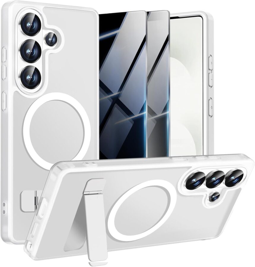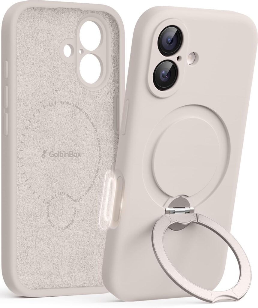 GolbinBox for iPhone 17 Case with 360° Spin Magnetic Stand, [Compatible with MagSafe][Full Camera Protection],Full Body Shockproof Liquid Silicone Phone Case with Ring Stand for iPhone 17 6.3”, Stone