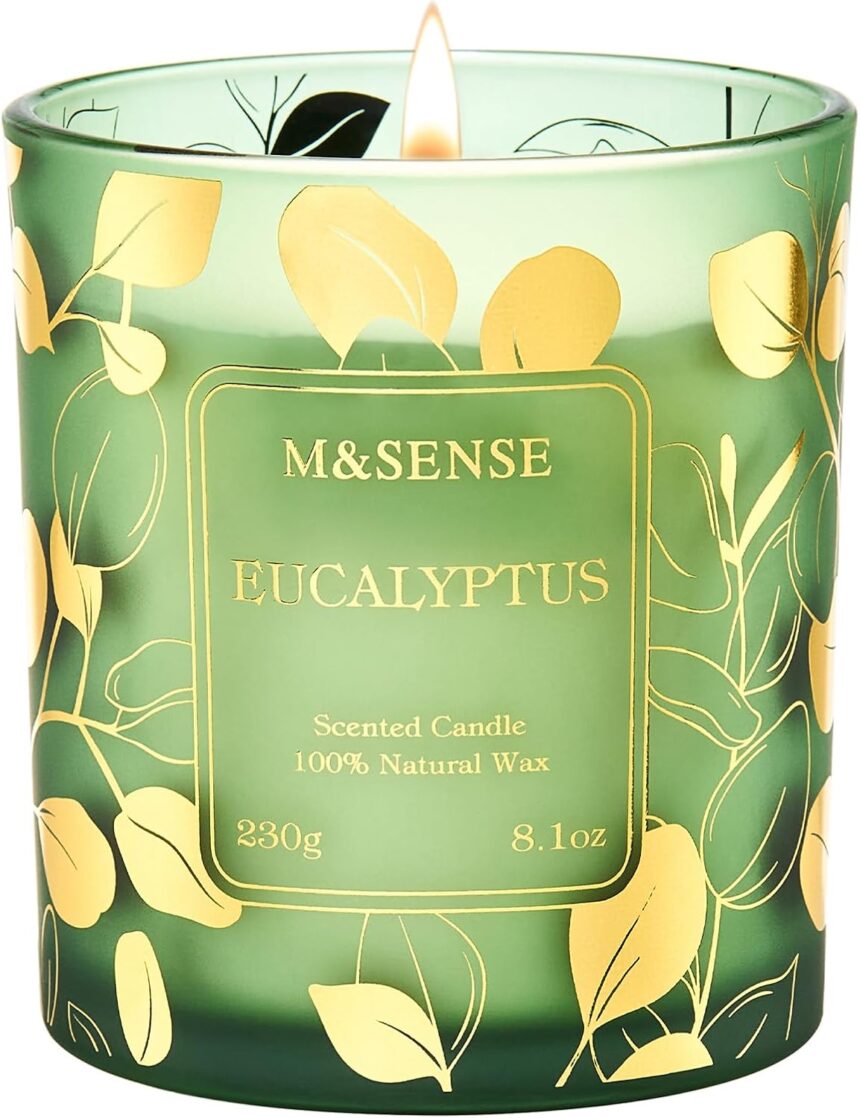 M&SENSE Eucalyptus Scented Vegan Soy Candles, No Toxin Calming Aromatherapy, 8.1oz 42-Hour Slow Burning, Relaxing Bathtub & Wellness Home Fragrance, Housewarming Gifts for Adults