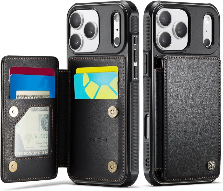 Vinich for iPhone 17 Pro Wallet Case with Card Holder, RFID Blocking Credit Slots Kickstand Shockproof Phone Cover Fit for iPhone 17 Pro 6.3″ Black