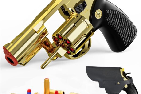 Revolver Toy Gun with Holster Gold – Soft Bullet Western Cowboy Prop Revolver Gun Plastic Play Cap Guns Pistol for Kids Boys Age 6+ Foam Blaster CS Toy Rifle Sniper Small Hand Gun Cosplay Shoot Game