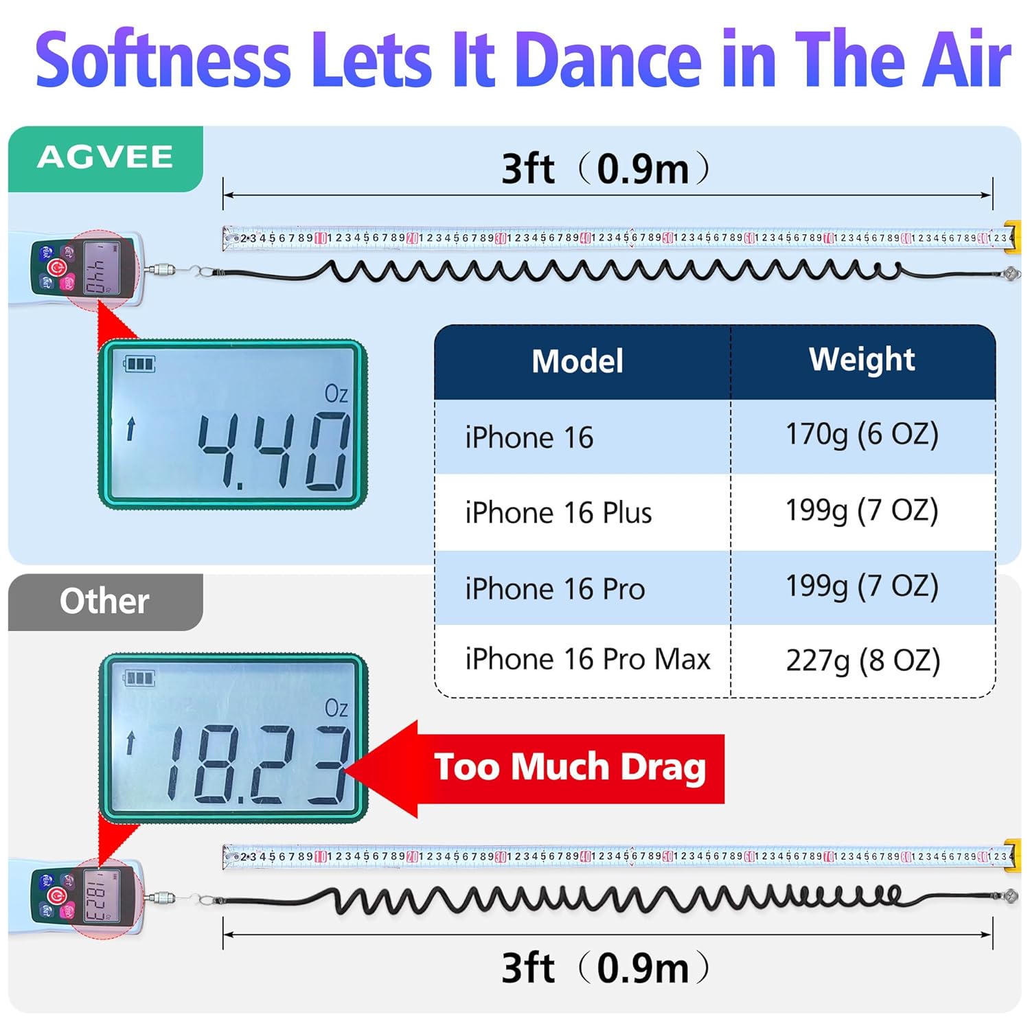 🚗[Tame Your Car’s Cable Jungle] No more wrestling with spaghetti cords! Our coiled design stretches from short to long, perfect for tight car spaces, then snaps back neatly like a slinky. Keep your cup holders free for coffee, not tangled chaos! Soft and elastic: No more wrestling with stiff, frozen-spaghetti-like cables in winter; Squishy as a pacifier, coils like a zen master.