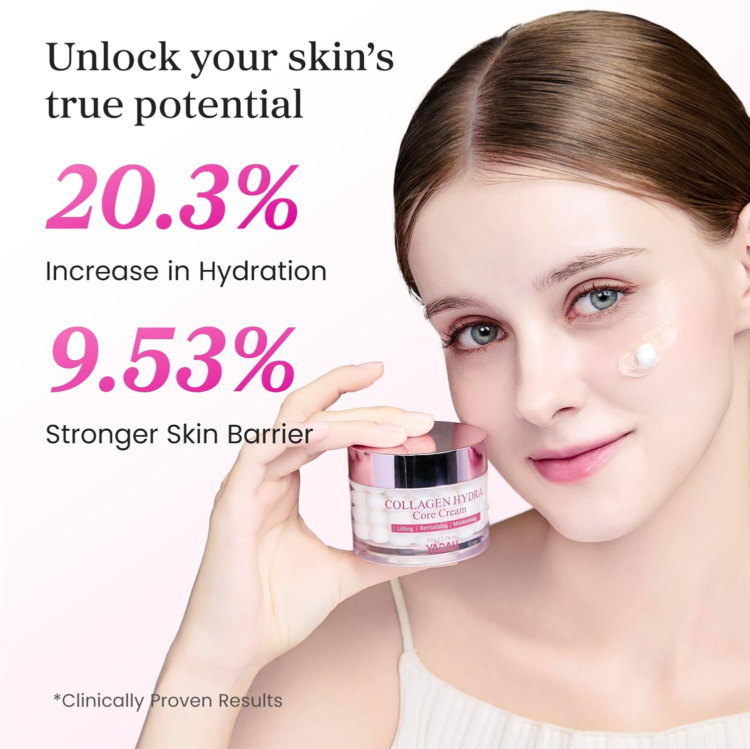 Deep Hydration & Firming with 1,000ppm Hydrolyzed Collagen: Powered by low molecular 1,000ppm collagen from France, this moisturizer penetrates deeply to nourish the skin, delivering intense hydration and boosting elasticity for a youthful, firm complexion.