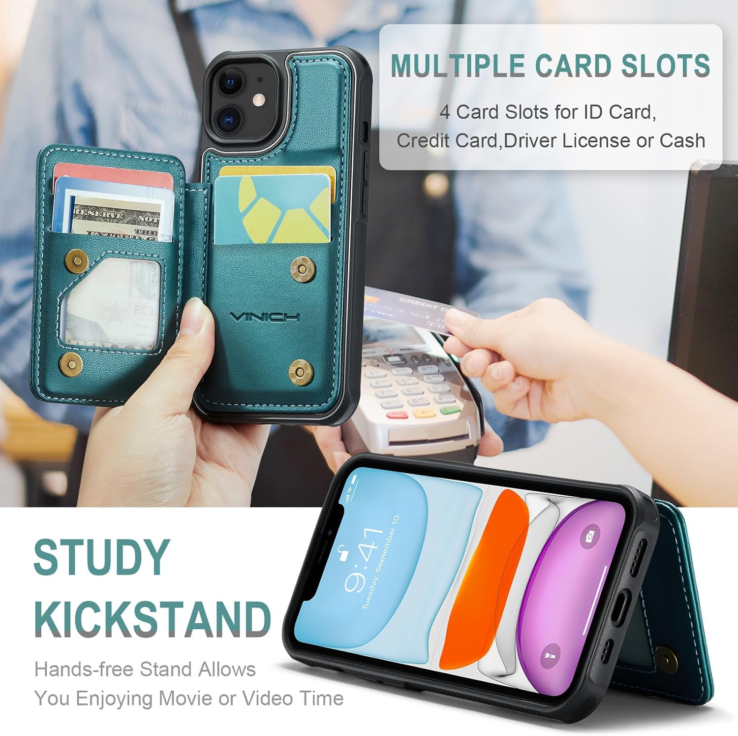 RFID Blocking Technology: Equipped with RFID blocking technology, our case for iPhone 11 is designed to protect your cards’ information from theft with an innovative blocking material; It’s perfect for people who travel or shop frequently