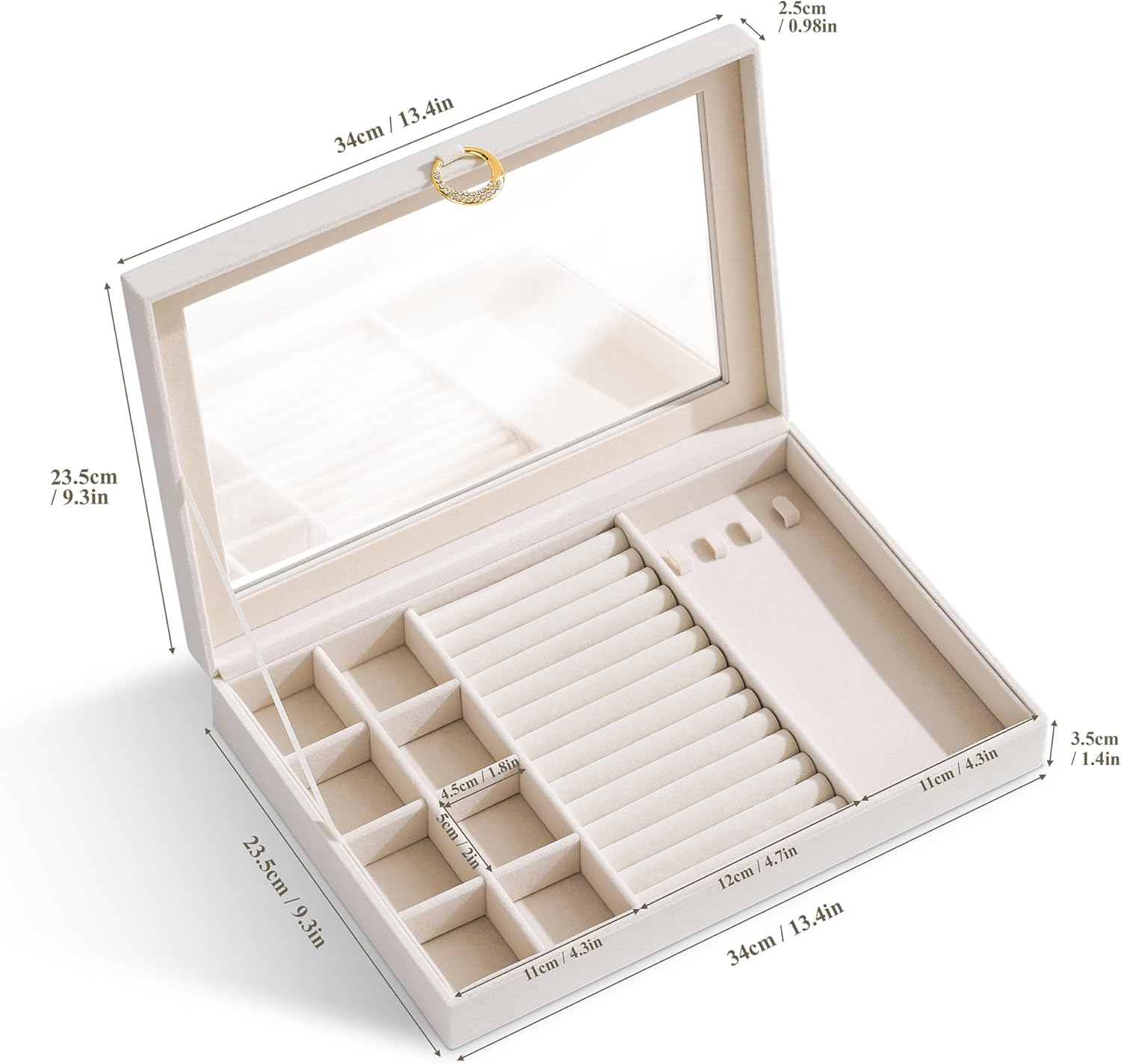 Elegant Glass Lid Design: Clear glass top allows you to view your jewelry at a glance while keeping everything dust-free. A stylish addition to any dresser, vanity, or closet.