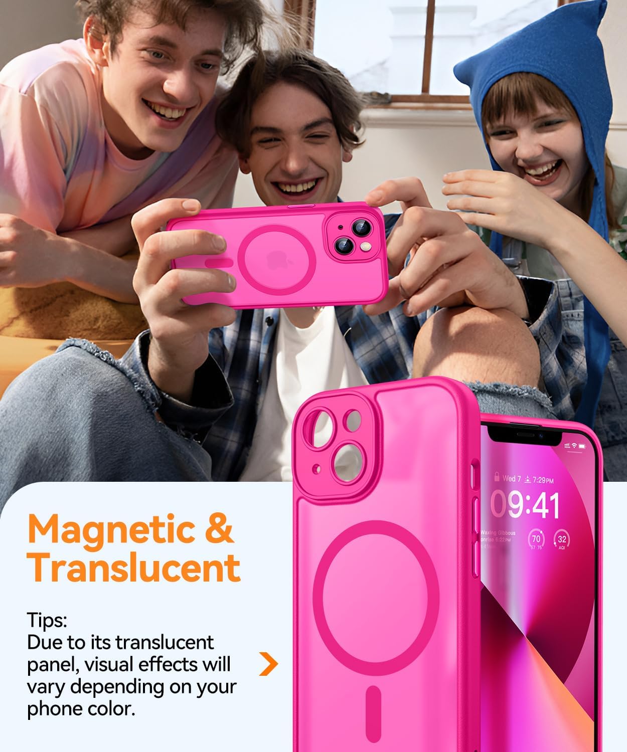 [Powerful Magnetic Attraction] With built-in powerful N52 magnets, this iPhone 13 case is perfectly compatible with MagSafe chargers and other Qi wireless chargers. It also firmly connects to other magnetic accessories like magnetic wallets, power banks, and car mounts, ensuring a secure and stable connection even during rotation or movement.