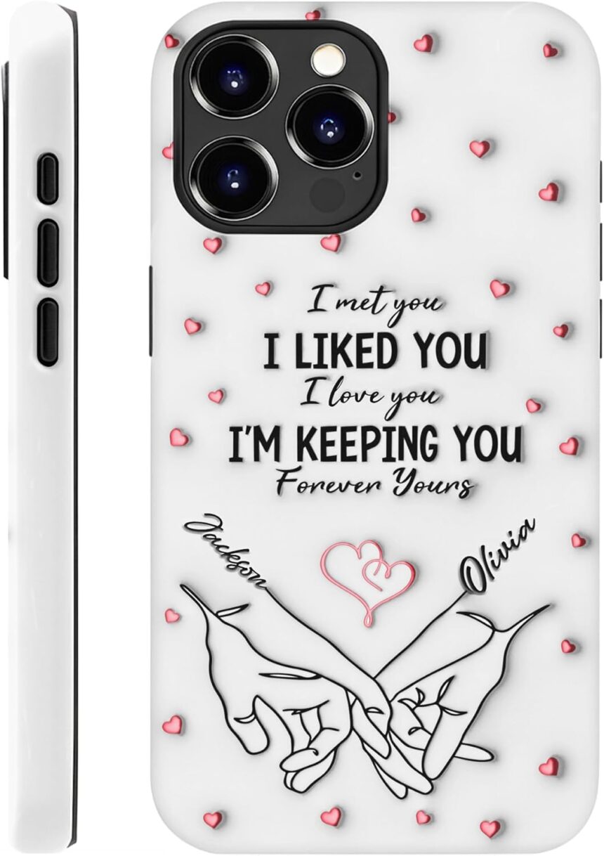 π PERSONALIZED COUPLE PHONE CASE WITH NAME, DATE & PHOTO β Customize with your names, anniversary date, photo, and romantic message to create a one-of-a-kind custom couple phone case that celebrates your love story.