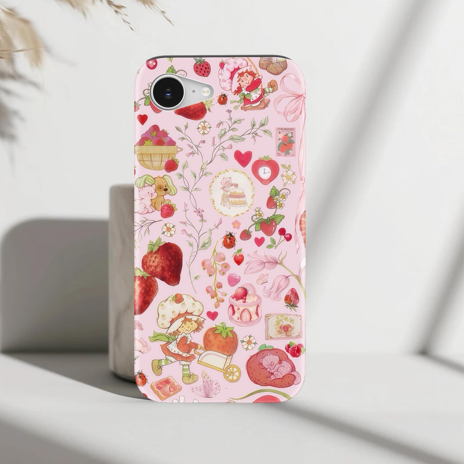 DEENAKIN for iPhone 16e Case – Wireless Charging Compatible – Dual-Layer Hard Shell & Silicone Cover – Protective Phone Case with Trendy Cute Designs for Women – Strawberry Sweetie