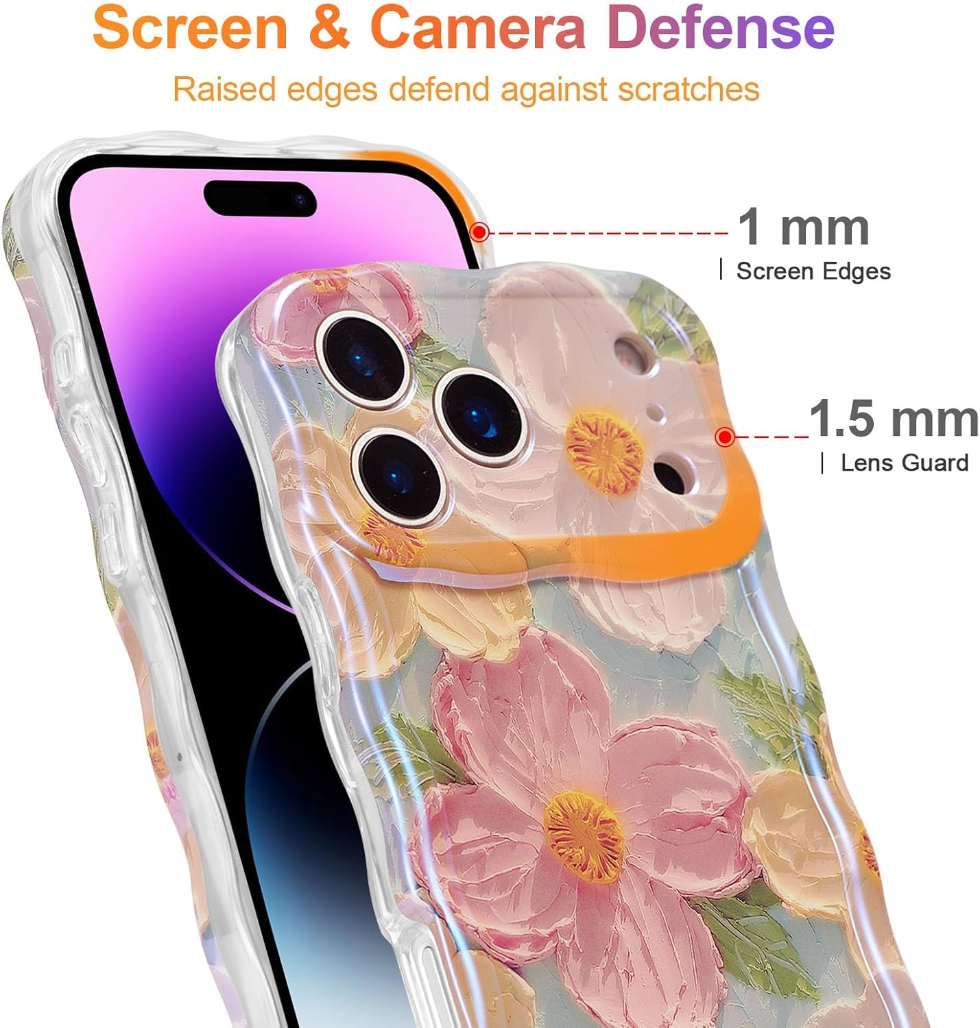 Compatible Model: This pretty oil painting flower floral design phone case compatible with iPhone 17 Pro Max 6.9 inches ONLY; please check the phone model size carefully before purchasing; cute flower pattern printed by IMD, but Not 3D, without 3D touch