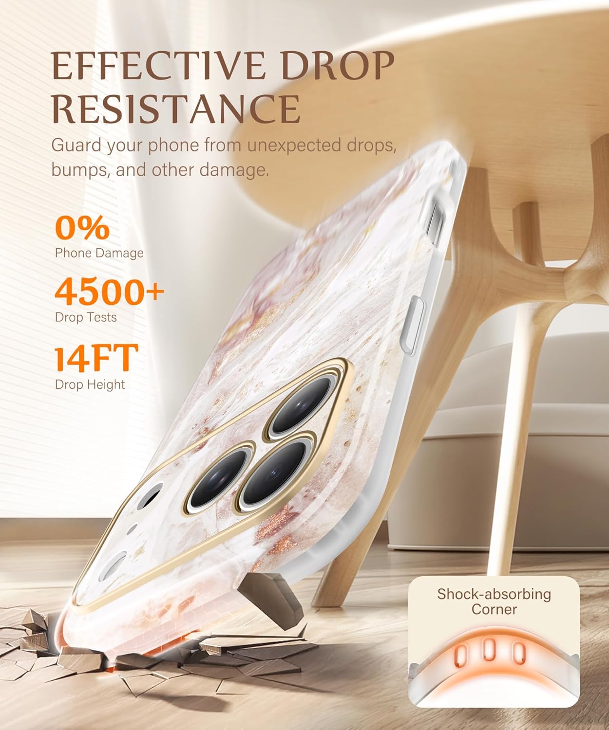 Chic Marble Design: The chic marble pattern, crafted with advanced IMD double-layer technology, delivers a glossy, color-retaining finish that stylish protection for iPhone 17 Pro Phone, keeps your phone elegant and stylish over time
