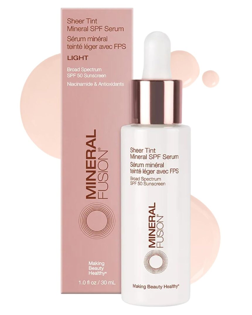 Mineral Fusion Sheer Tint SPF Face Serum (Light) – Tinted Broad Spectrum SPF 50 Mineral Zinc Oxide Sunscreen – Sheer Coverage Makeup, Lightweight & Dewy Finish – With Niacinamide, Aloe Vera – 1 Fl Oz