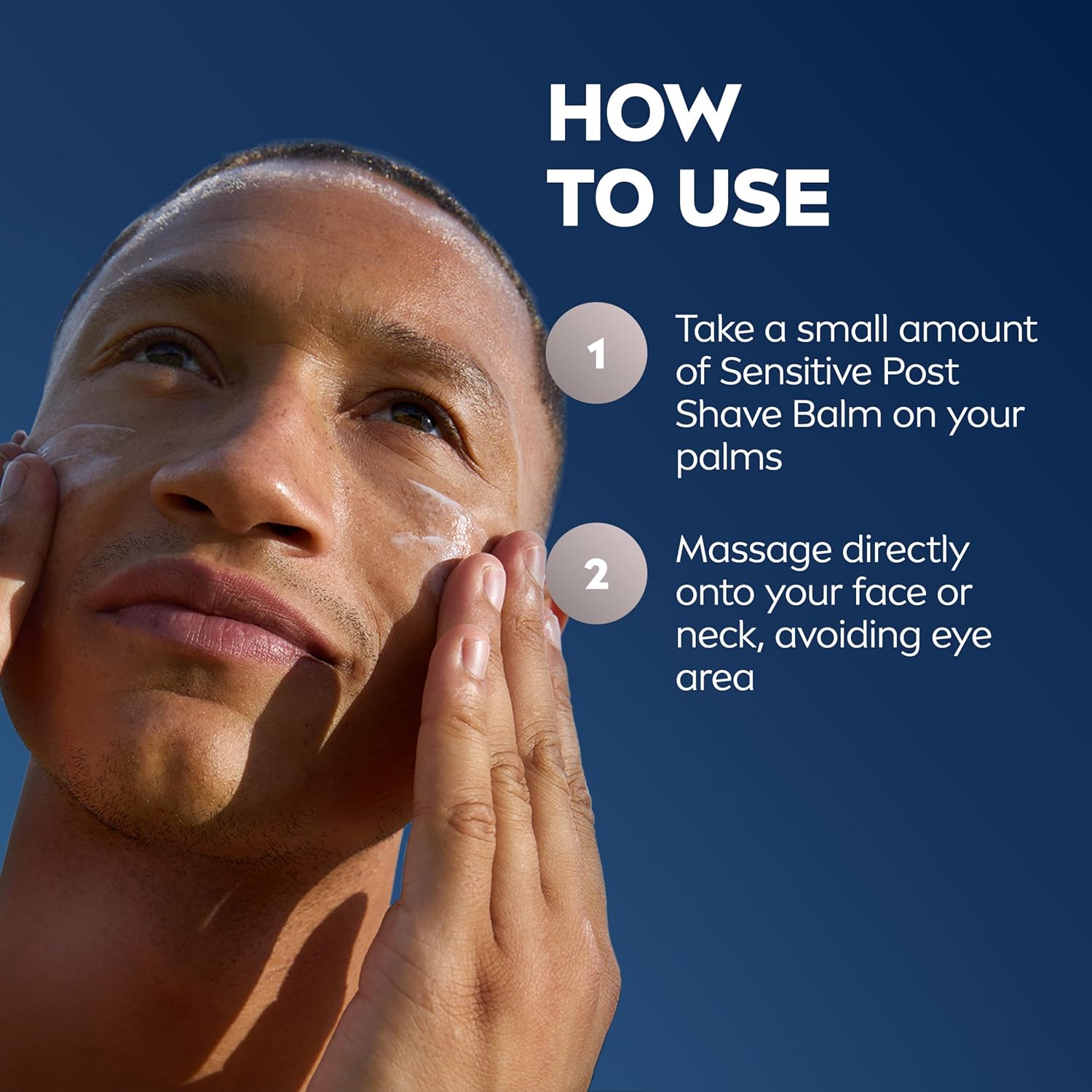 NIVEA MEN Sensitive Soothing Post Shave Balm is formulated to instantly soothe shave irritation. Enriched with VitaminPro Complex—Vitamin E, Provitamin B5 and Chamomile extract—this soothing, moisturizing aftershave balm for men helps improve skin’s defense against dryness for resilient and healthy-looking skin. The fast-absorbing, non-sticky and non-greasy formula helps provide your skin with long-lasting hydration and fights the five signs of shave irritation: burning, micro cuts, dryness, tightness and stubble itch. Free of drying alcohols, this mens aftershave balm is suitable for daily use. NIVEA MEN Sensitive Post Shave Balm is a key part of a skin and beard care routine and pairs well with NIVEA MEN Sensitive Shave Gel, Sensitive Face Wash and NIVEA MEN Sensitive Face Lotion with Broad Spectrum SPF 15 Sunscreen as part of a daily skincare regimen. To use, apply this after shave balm for men liberally on shaved skin, avoiding the eye area. NIVEA MEN is a trusted leader in skin care products, with more than 110 years of expertise.
