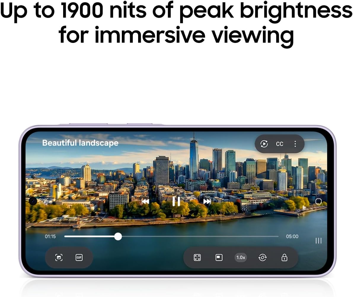Galaxy A37 5G is a sleek and powerful entertainer that combines an elevated design, lasting performance, smart AI features, and triple-lens camera system. Its 6.7″ Super AMOLED display¹ with immersive viewing and up to 1900 nits peak brightness makes videos, games and browsing look stunning. Capture every moment with the 50MP HDR camera, featuring brighter, sharper videos6 in low light and improved shot speed, while the studio-grade front camera ensures perfect selfies every time.
