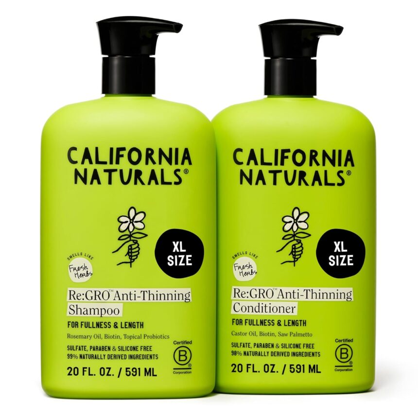 California Naturals Re:GRO Shampoo and Conditioner Set, Anti-Thinning & Hair Growth Support, All Hair Types, Vegan, Natural, Cruelty Free, Silicone, Paraben & Sulfate Free for Women & Men, 20 oz