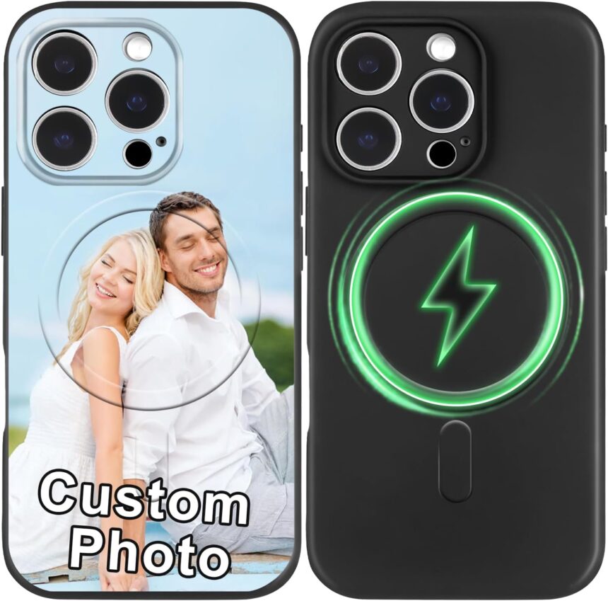 Custom Phone Case Compatible with Magsafe for iPhone 17 16 15 14 13 12 Air Pro Max Plus Personalized Picture Phone Logo Text Name Case Military-Shockproof Scratch-Resistant Drop Protection (1 Photo)