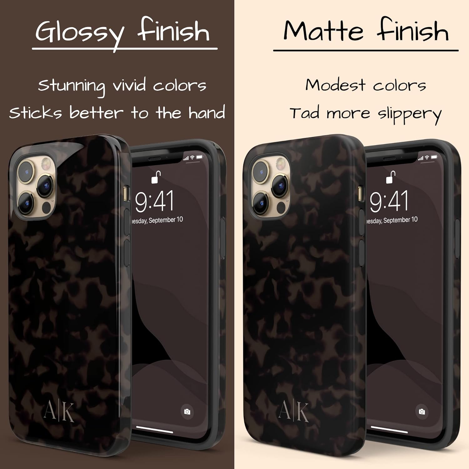 🎨 DESIGN – Elegant initials case on a dark tortoise shell pattern and a full wrap edge-to-edge print! Choose between a glossy print finish with super vibrant colors or a matte finish with more understated tones, both with excellent U.V. protection and superior resistance to outdoor elements!