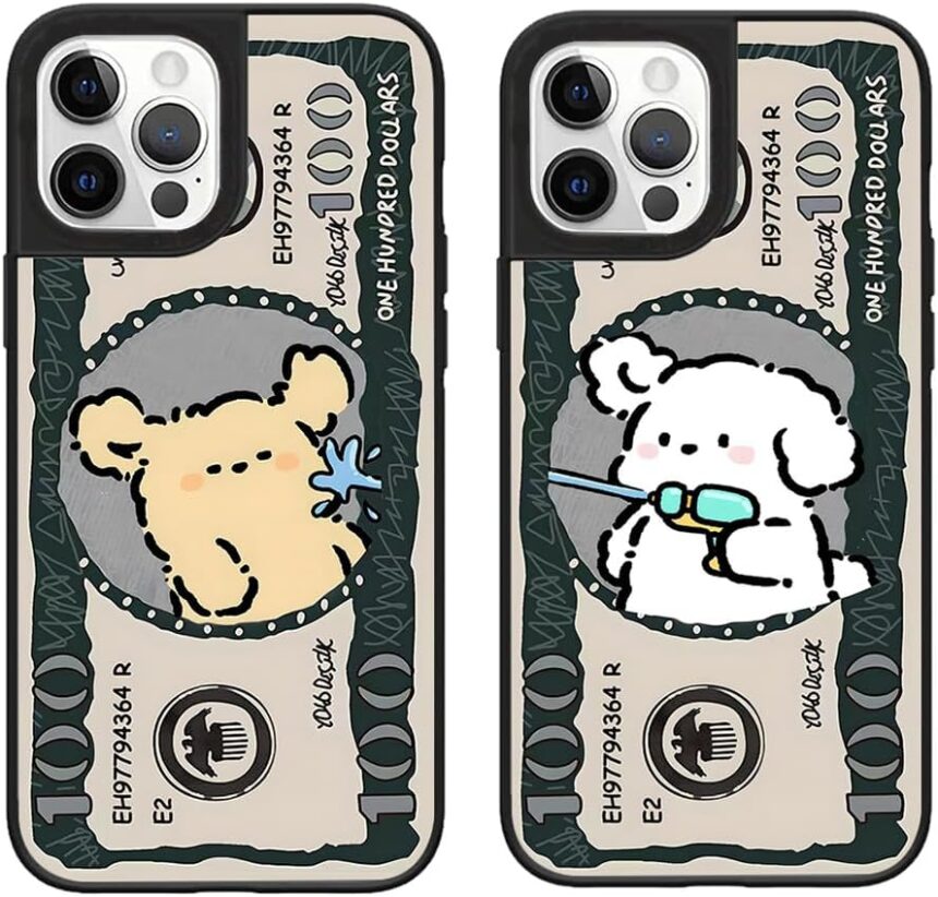 Dollars Dog Matching Phone Case Compatible with iPhone 17 16 15 14 13 12 11 XR Pro Max Air Plus Mini, Slim Shockproof Tough Cover, Cute Aesthetic Cartoon Pattern, Gift for Teens and Women