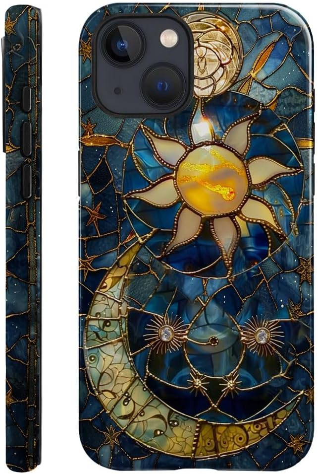 Generic Case Compatible with iPhone 14 – Glossy Hybrid Durable Shockproof Phone Cover,Cases for Woman Girl – Moon Stars Celestial Glass