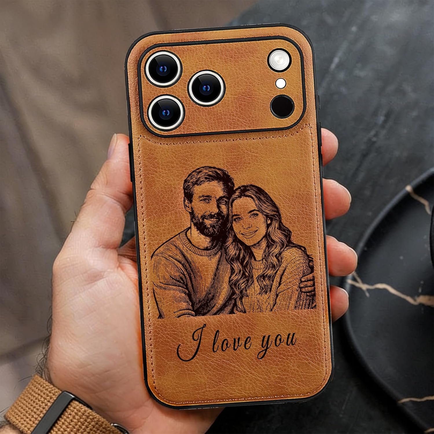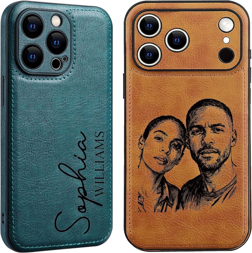 Personalized Leather Case for iPhone 17 16 15 14 13 12 11 – Pro Max Plus mini – Custom Name Picture Phone Cover, Anniversary Birthday Graduation Gifts for Couple (Leather-Brown)