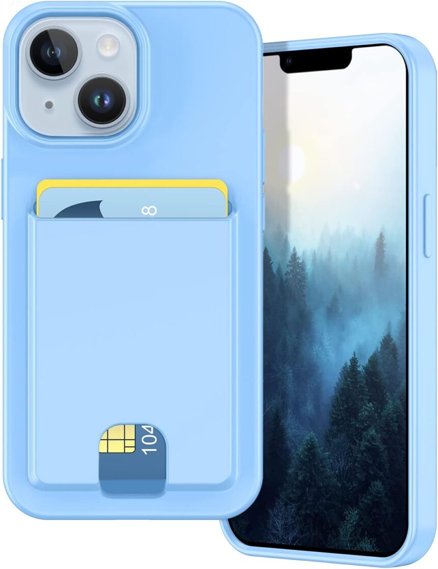 Petocase for iPhone 14 Case/iPhone 13 Wallet Case,Card Holder Slot Ultra Bling Slim Clear Flexible TPU Gel Rubber Soft Skin Silicone Protective Phone Case Cover for Apple iPhone 13/14 Light Blue