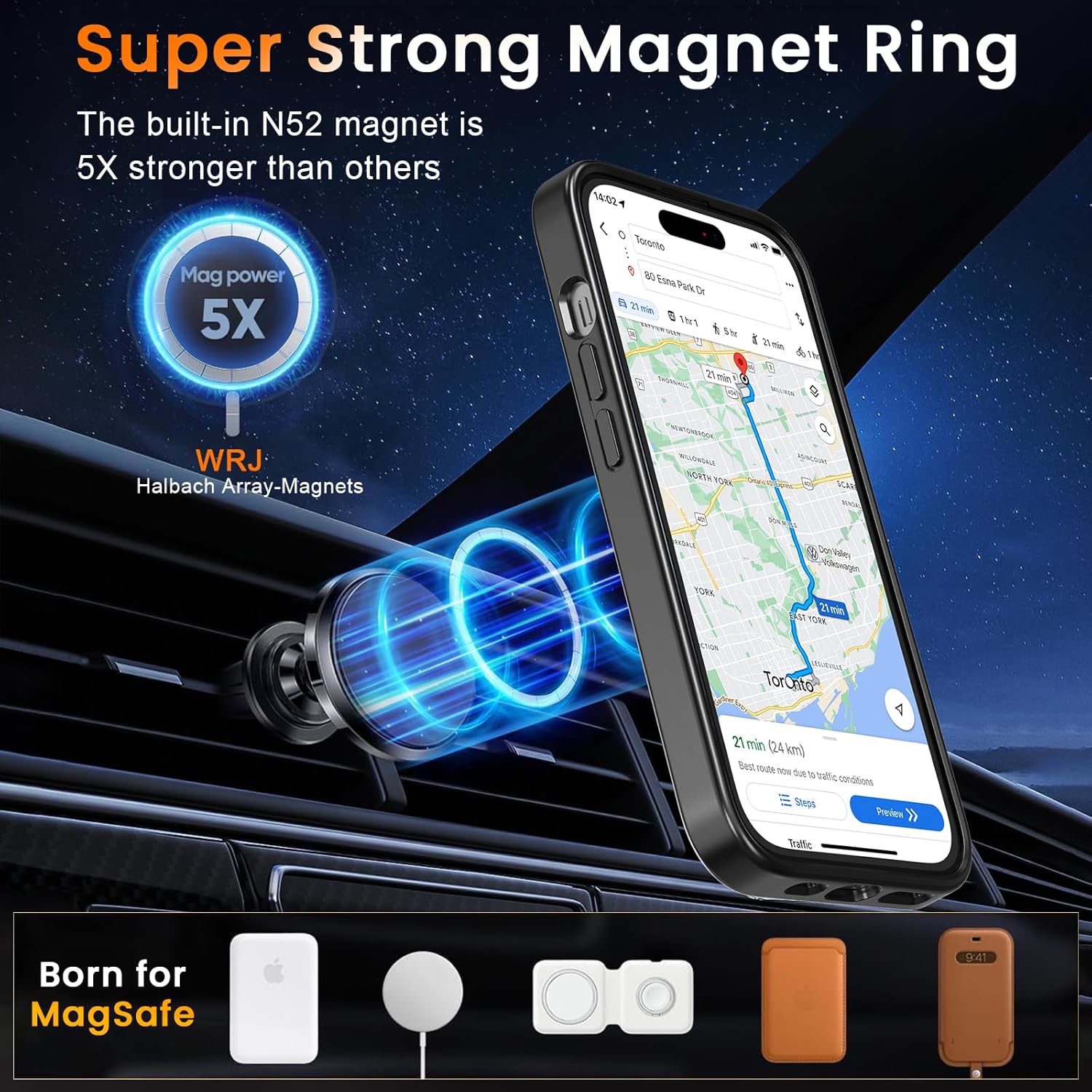 Compatible with Magsafe: Magnetic Case specially designed for iPhone 13/14/15 6.1 Inch phone.Compatible with magsafe wireless charger and other magnetic accessories, such as magnetic phone wallet,wireless power bank, car mounts and wireless charging stand
