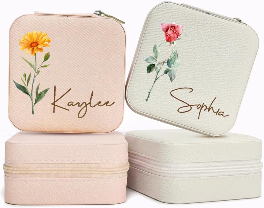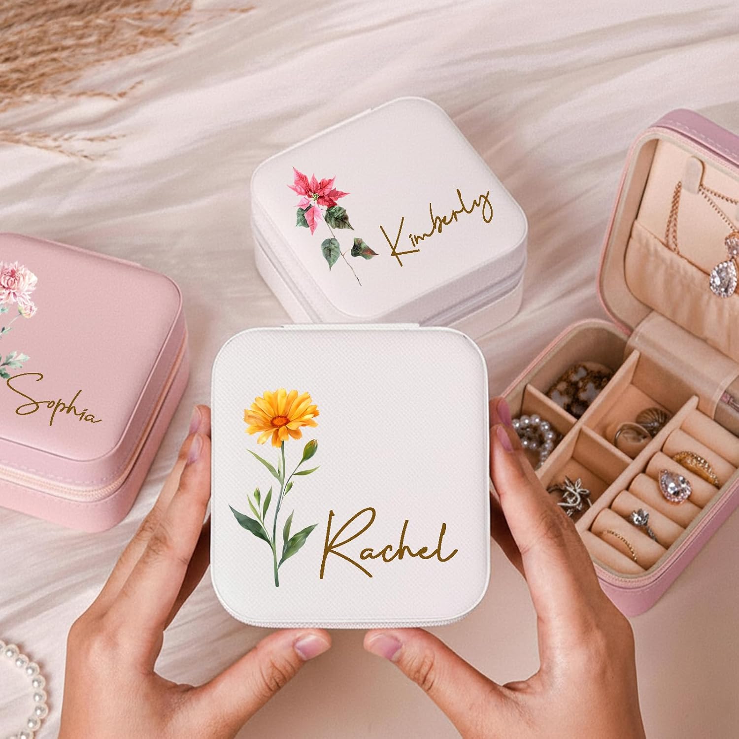 Yofair Mothers Day Mom Gifts for Women Personalized Jewelry Box Custom Travel Jewelry Case Gifts for Teen Girl Trendy Stuff Ring Box Birthday Gifts for Mom