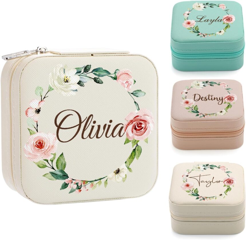 💎 Personalized Jewelry Box for Bridesmaid: Custom jewelry box is a perfect gift for bridesmaids and personalization makes it more special when you are going to surprise someone with maid of honor proposal. This box can be used to store several rings, earrings, and dainty bracelets or necklaces and is perfect for travel!