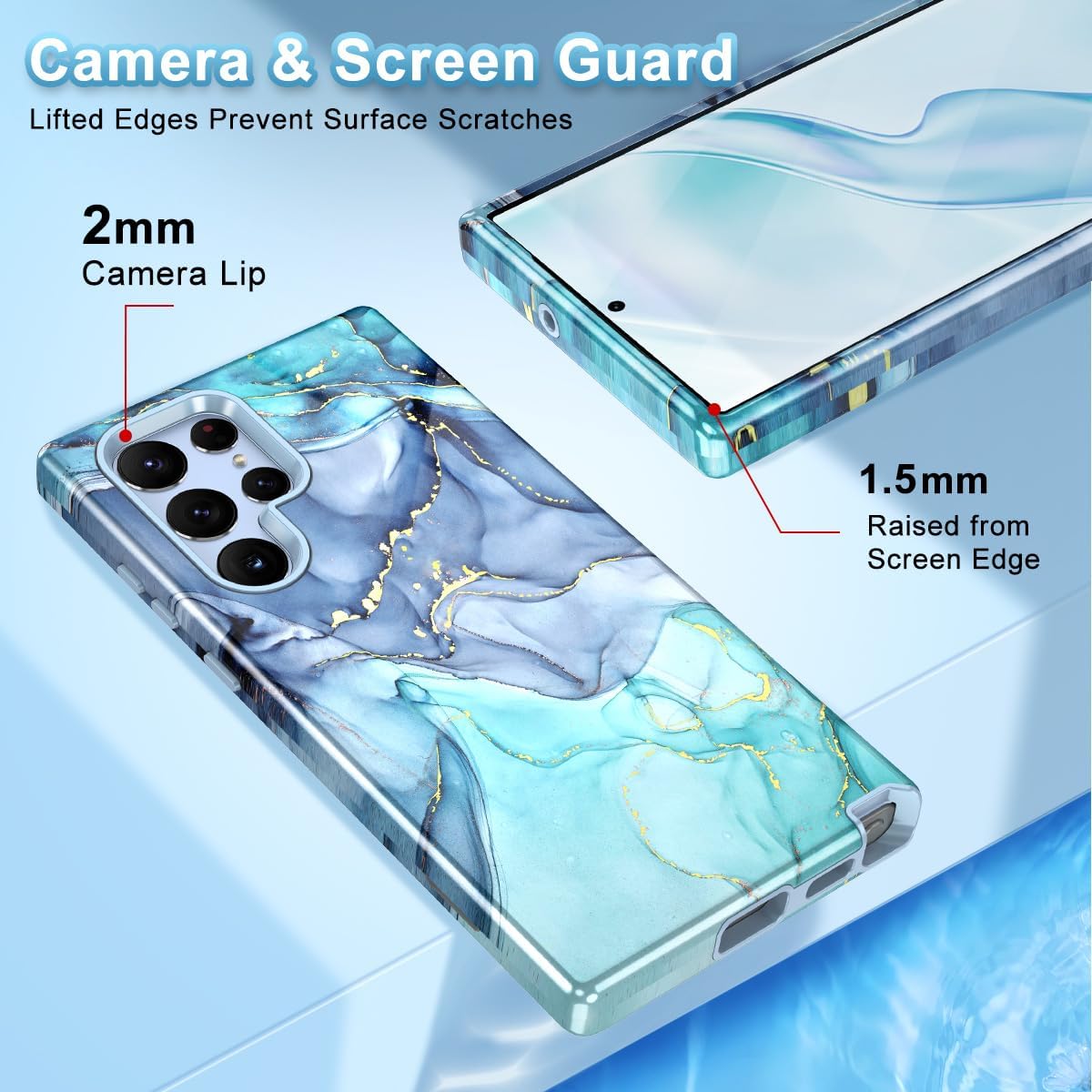 Btscase for Samsung Galaxy S22 Ultra 5G Case, Marble Pattern 3 in 1 Heavy Duty Shockproof Full Body Drop Protective Women Girls Case