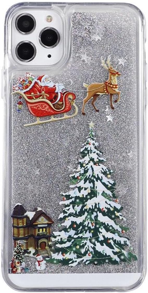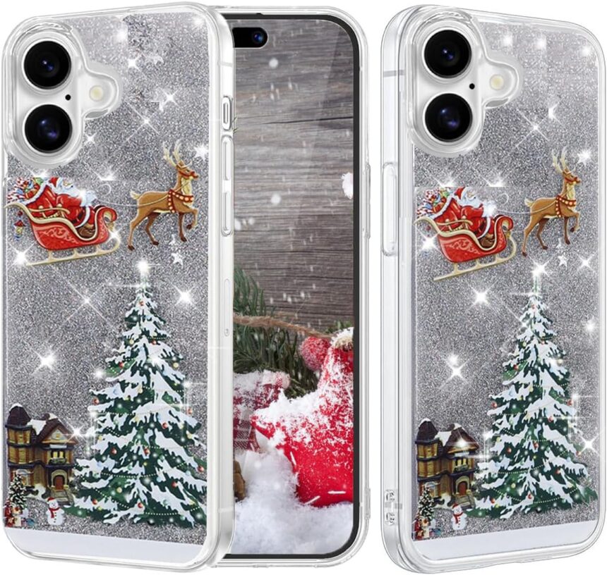 Changjia Glitter Christmas Case for iPhone 16 Plus, Cute Merry Christmas Tree Santa Elk Liquid Flowing Floating Moving Bling Sparkle Clear Shockproof Women Girls Case for iPhone 16 Plus 6.7″ (Silver)