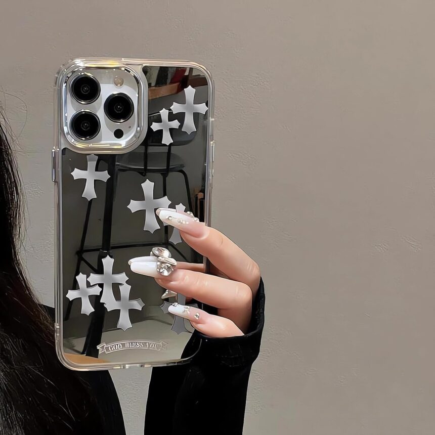 Mirror Back:The mirror on the back of the phone case makes it convenient for you to check your face anytime and anywhere. With the chrome cross pattern, it is cute, cool and gothic.