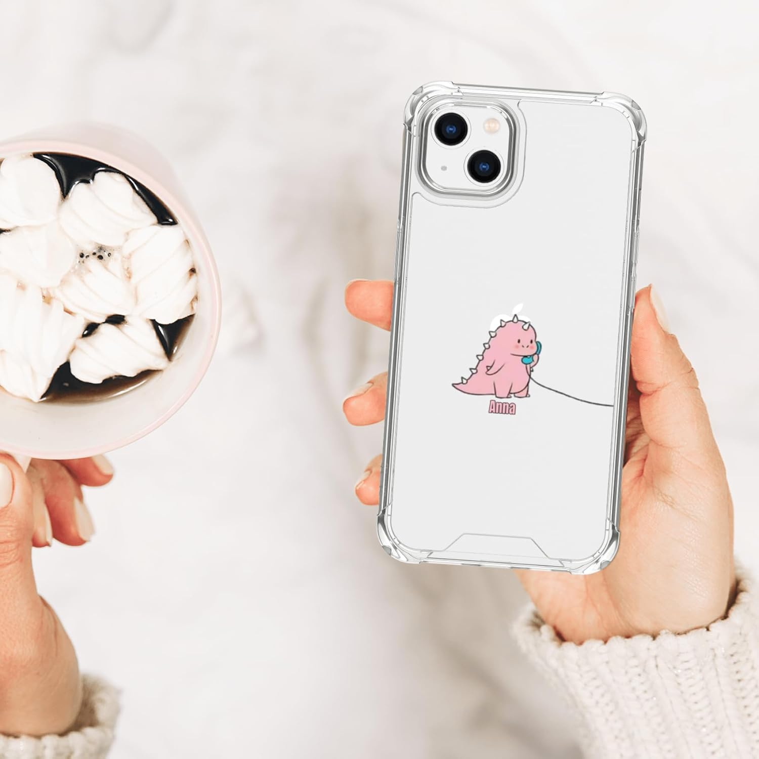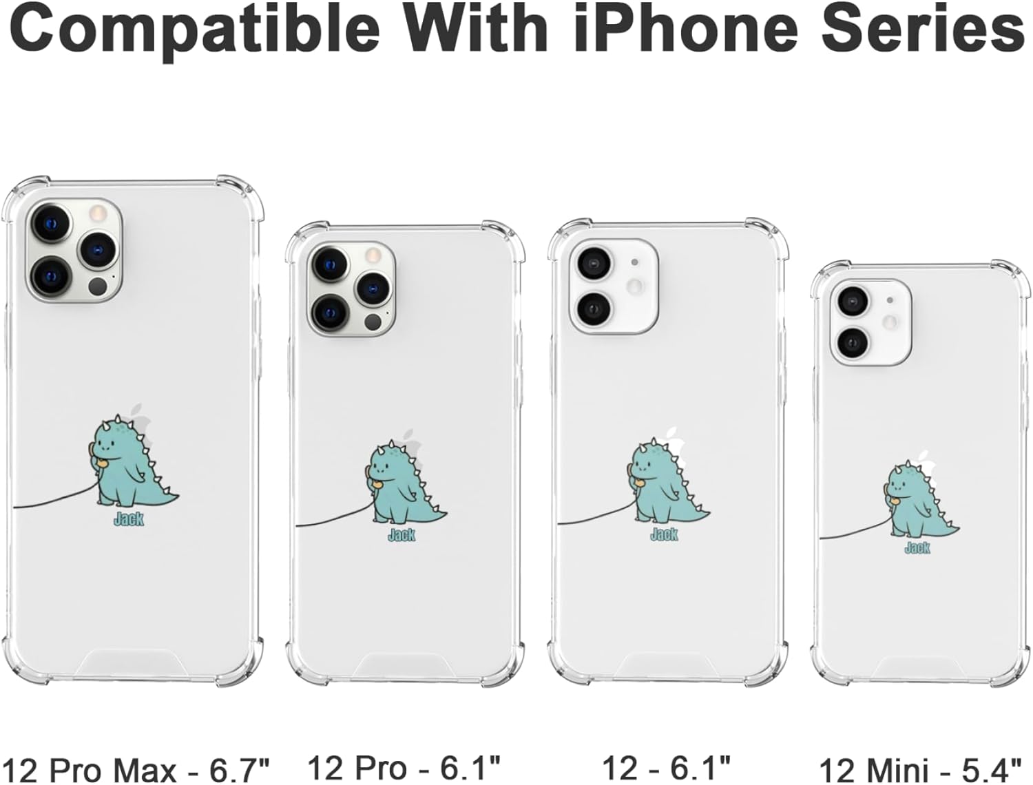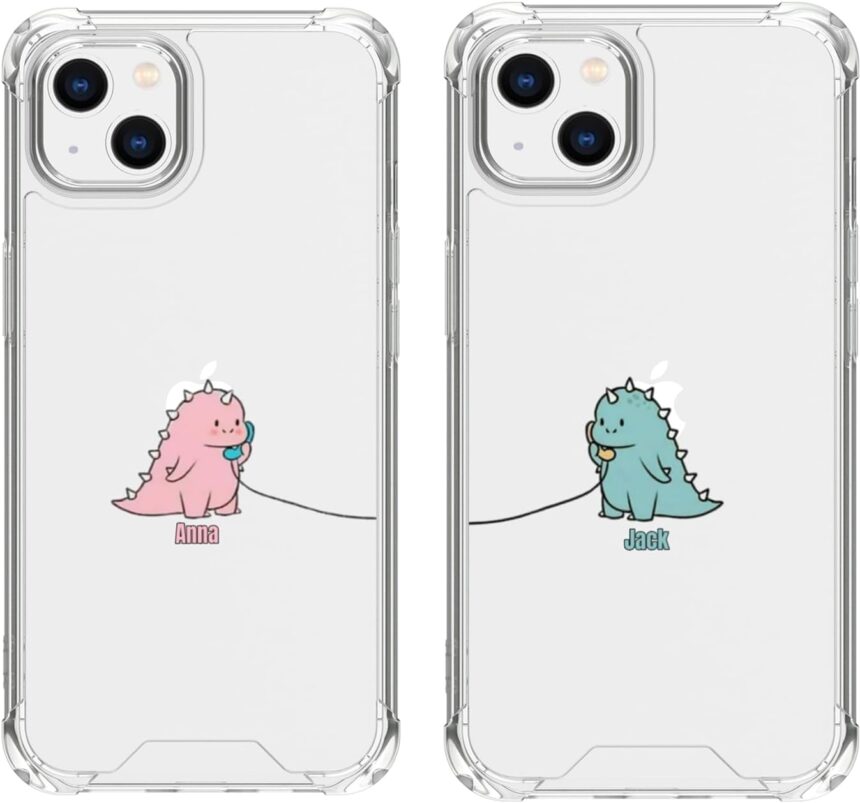 Custom Name Cute Dinosaur Couple Lovers Matching Phone Case for iPhone 17 16 15 14 13 12 11 XR Pro Max Plus Mini Case – Gift for Couple or Bestie (Clear)