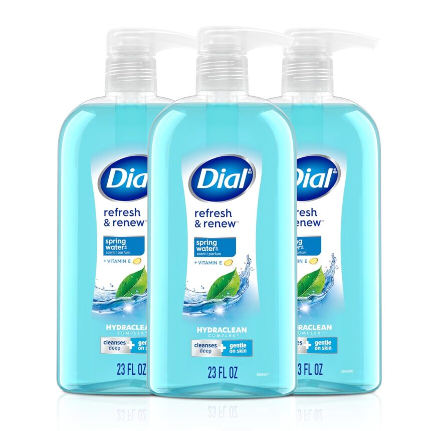 Dial Body Wash, Refresh & Renew Spring Water, 23 Fl Oz (Pack of 3), Hydraclean Complex & Vitamin E, Gentle, Leaves Skin Feeling Nourished, Dermatologist-Tested, No Parabens & Sulfates