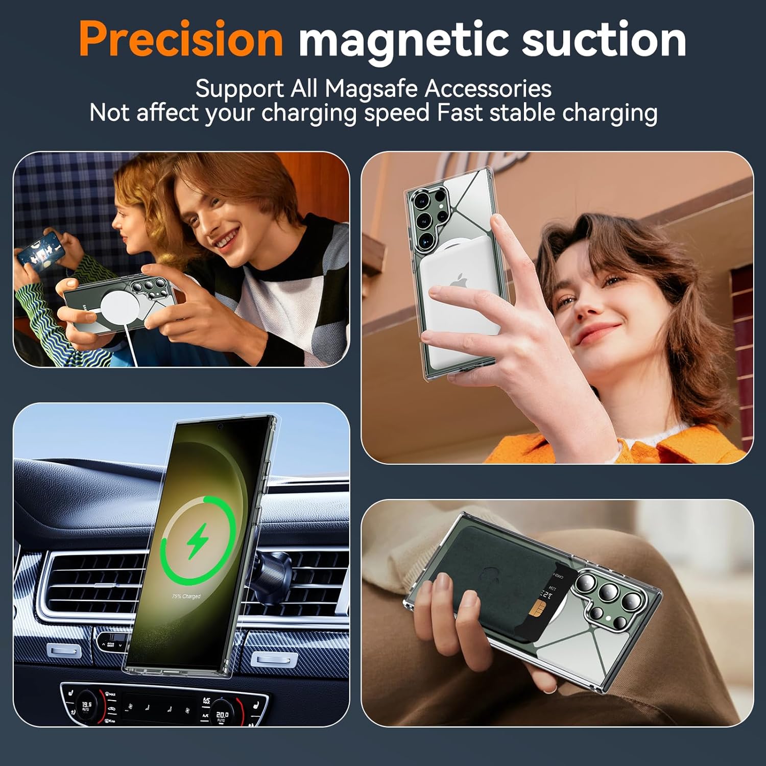 【Super Strong Magnet: Seamless magnetic Experience】Featuring 36 integrated N52SH magnets—100% stronger than standard options—this magnetic Samsung 23 ultra case delivers an unshakable connection with MagSafe chargers, wallets, and mounts. Experience flawless alignment and accelerated wireless charging, ensuring your accessories stay secure and your phone powers up rapidly.