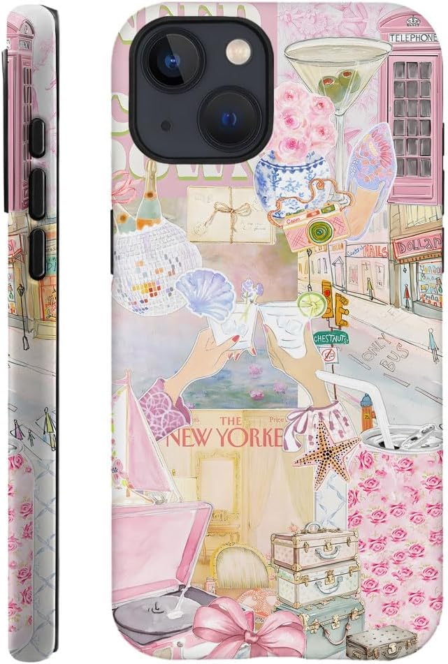 Generic Case Compatible with iPhone 15,Scratch Resistant Hybrid 2-Layer Hard Shell Phone Case,Pink Vintage Aesthetic Collage