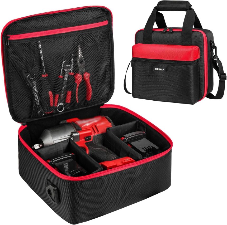 Portable Tool Bag: Designed with ergonomic handles & detachable shoulder strap. An ideal construction site solution featuring quick-access double-zipper design, compatible with DeWalt and Milwaukee impact wrench kits