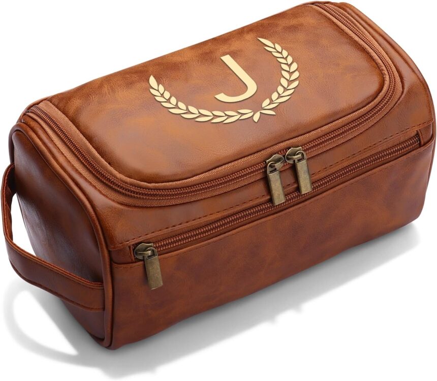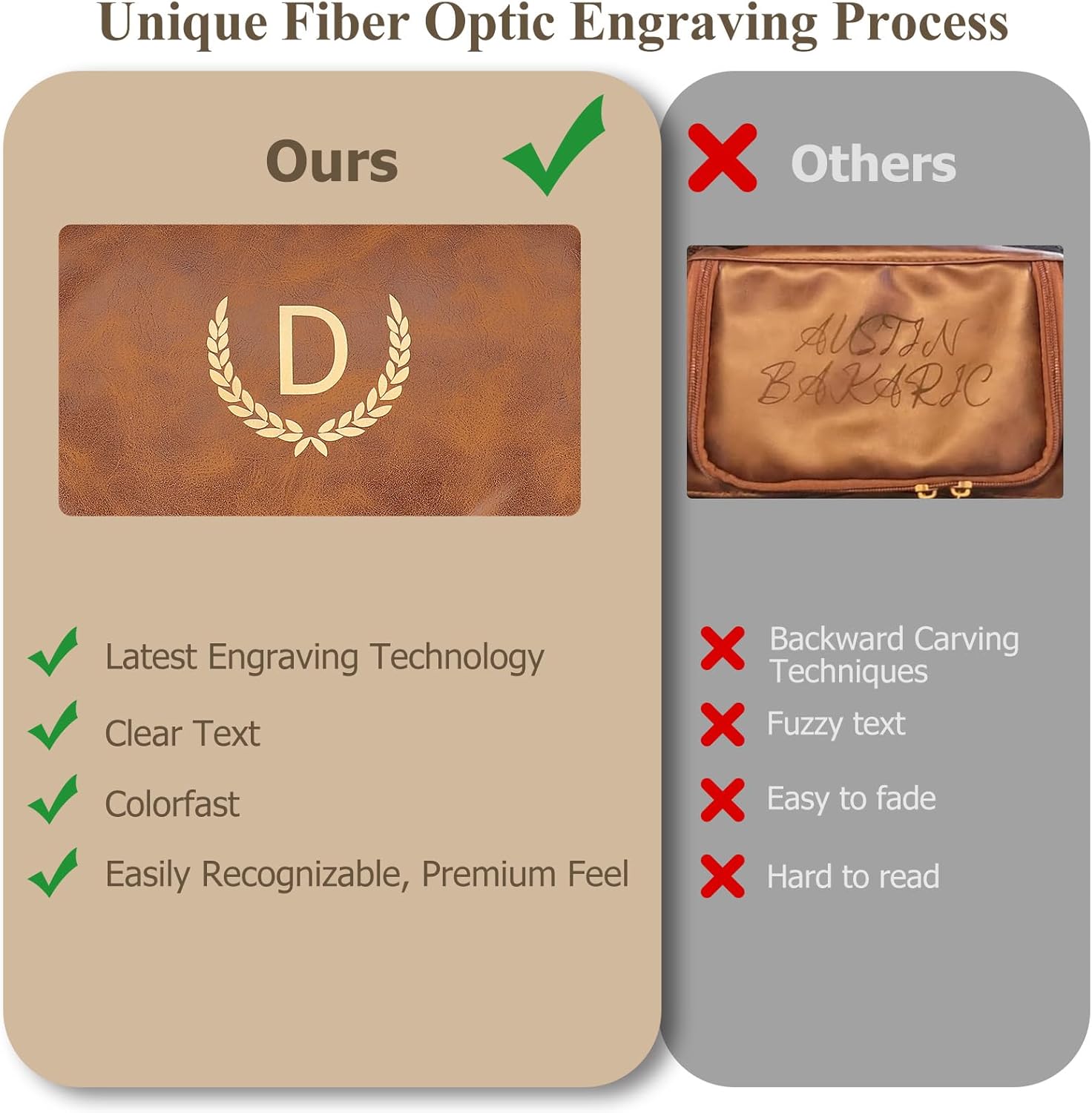 Spacious & Smart: Fiber-optic engraved initials stay sharp and never fade. The exterior double compartment keeps dry and wet items separate, while premium waterproof PU leather and nylon lining ensure long-lasting durability. Multiple interior pockets plus a smooth double-zipper design give mens shaving bag users quick access to every travel essential, turning the pouch into a true travel essentials men organizer