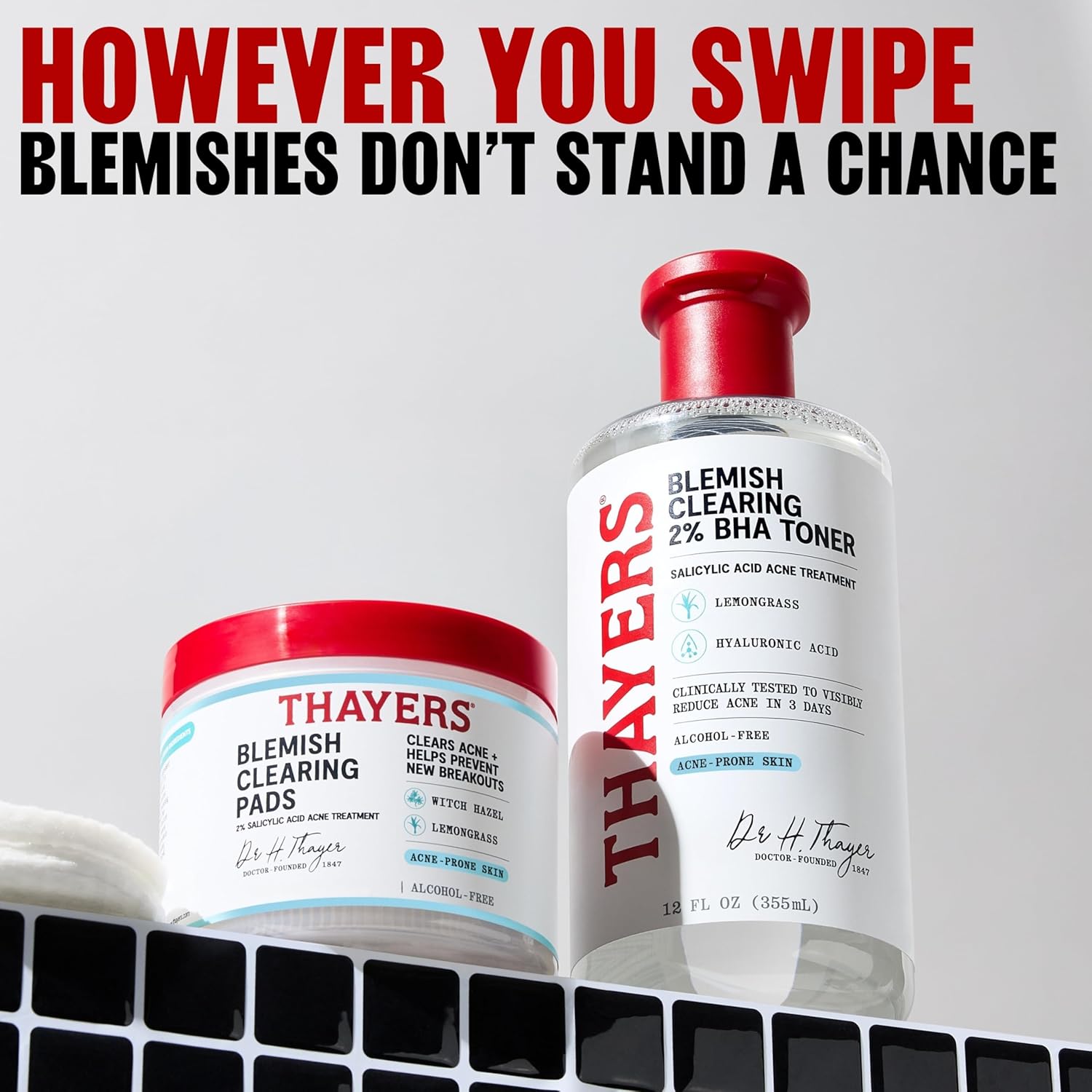 ALCOHOL-FREE BLEMISH TONER PADS FOR FACE: Thayers Alcohol-Free Blemish Toner Acne Pads clear acne blemishes, blackheads and whiteheads, while actively preventing new breakouts. Clear acne-prone skin without wrecking your skin’s moisture barrier with this women’s and men’s skin care favorite.