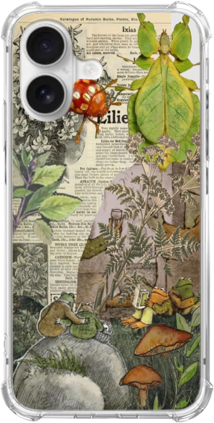 Vintage Toad and Frog Aesthetic Phone Case Compatible with iPhone 17, Cottagecore Nature Plants Phone Cover for iPhone 17