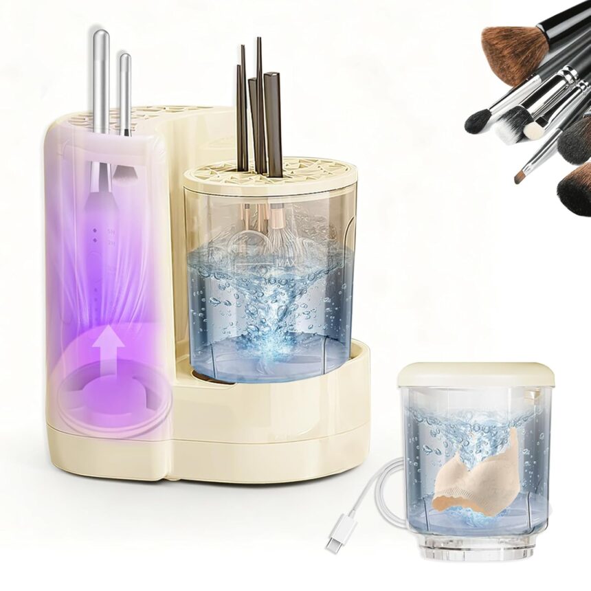 3-in-1 Electric Makeup Brush Cleaner and Dryer Machine with Detachable Underwear Cleaning Cup-Deep Cleaning,2H/5H Adjustable Drying,Fully Washable,for Makeup Brushes,Sponges and Delicate Clothing