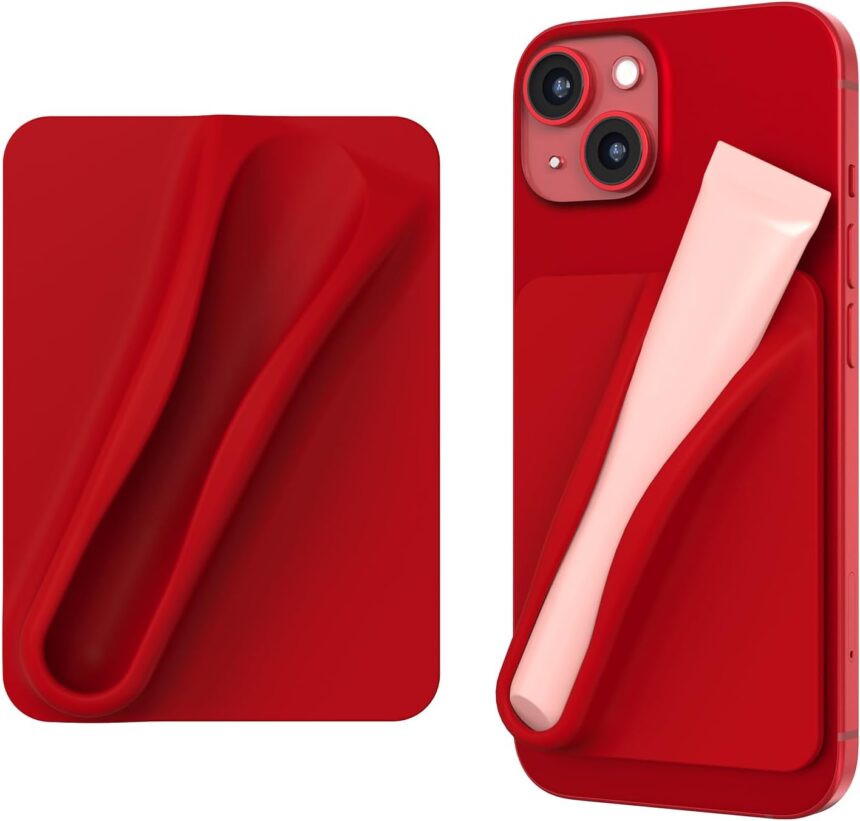 DOB SECHS Silicone Lip Holder for Cell Phone Lipstick Lip Glaze Phone Case Back Stick On Holder for iPhone and Android Phones, Red