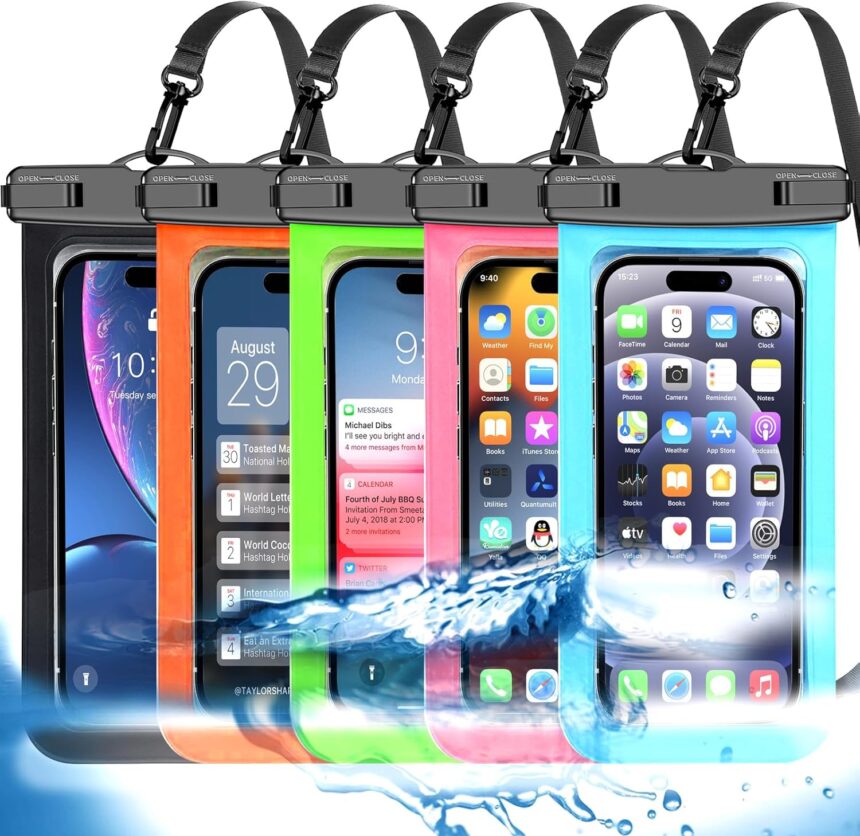 Famoby Up to 8.3″ 5 Pack Multicolor Universal Waterproof Phone Pouch, Phone Waterproof Case Dry Bag,Protection Level: IP68,Outdoor Sports for Apple iPhone,Samsung,and More,Black,Blue,Pink,Orange,Green