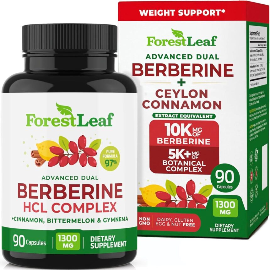 ForestLeaf Berberine Supplement – 1300mg per Serving – Ultra High Potency Berberine HCl with Ceylon Cinnamon, Bitter Melon & Gymnema – GLP-1 Weight Management Support – 90 Caps