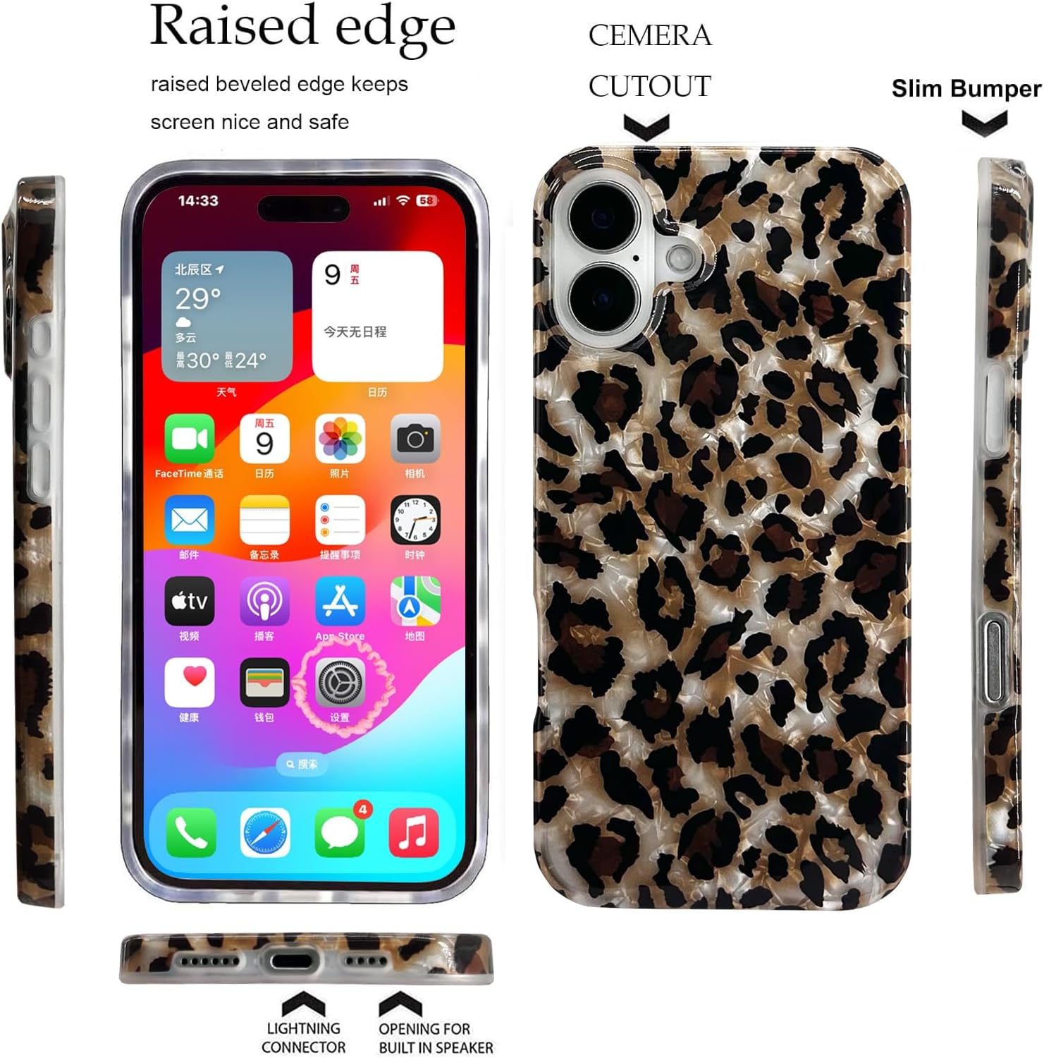 J.west Compatible with iPhone 16 Case,Luxury Sparkle Translucent Clear Vintage Leopard Print Soft Silicone Cover for Girls Women Protective Phone Case for iPhone 16 6.1 inch Cheetah