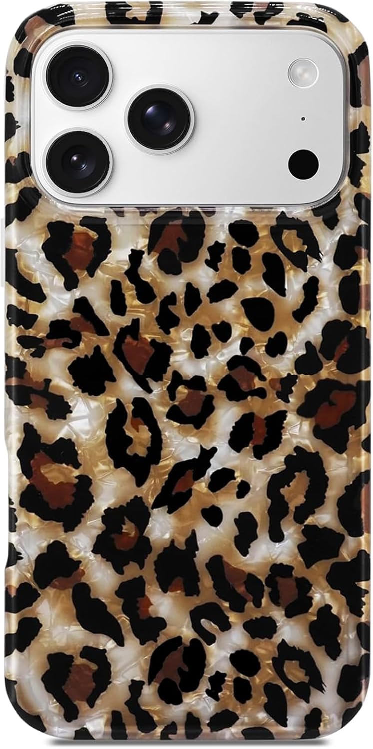 Glossy Back cover features shiny vintage leopard cheetah pearly shell animal print pattern design that compliments your personal style