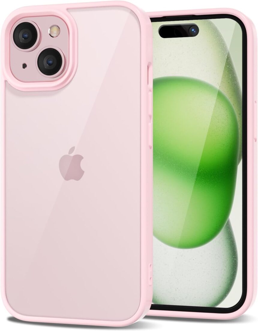 LoeoeL for iPhone 15 Case Clear, Transparent Hybrid 15 Phone Case [Hard Plastic & Soft Silicone Bumper] Acrylic Non Yellowing Thin Slim Protective Cover for Women, Light Pink