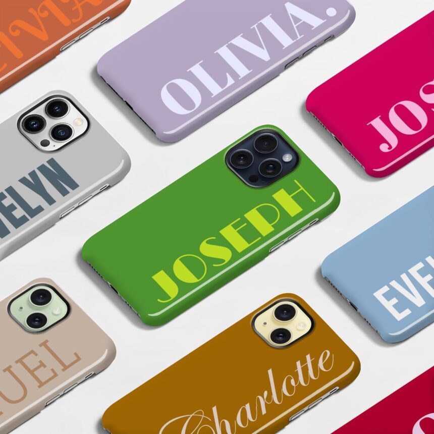 Custom Name Initials Phone Case: Make a gorgeous phone case decorated with your name or initials. We provide 19 solid color backgrounds and 15 checkerboard backgrounds with 50 text color for you to freely combine and choose. Click the Customize Now button to get started.