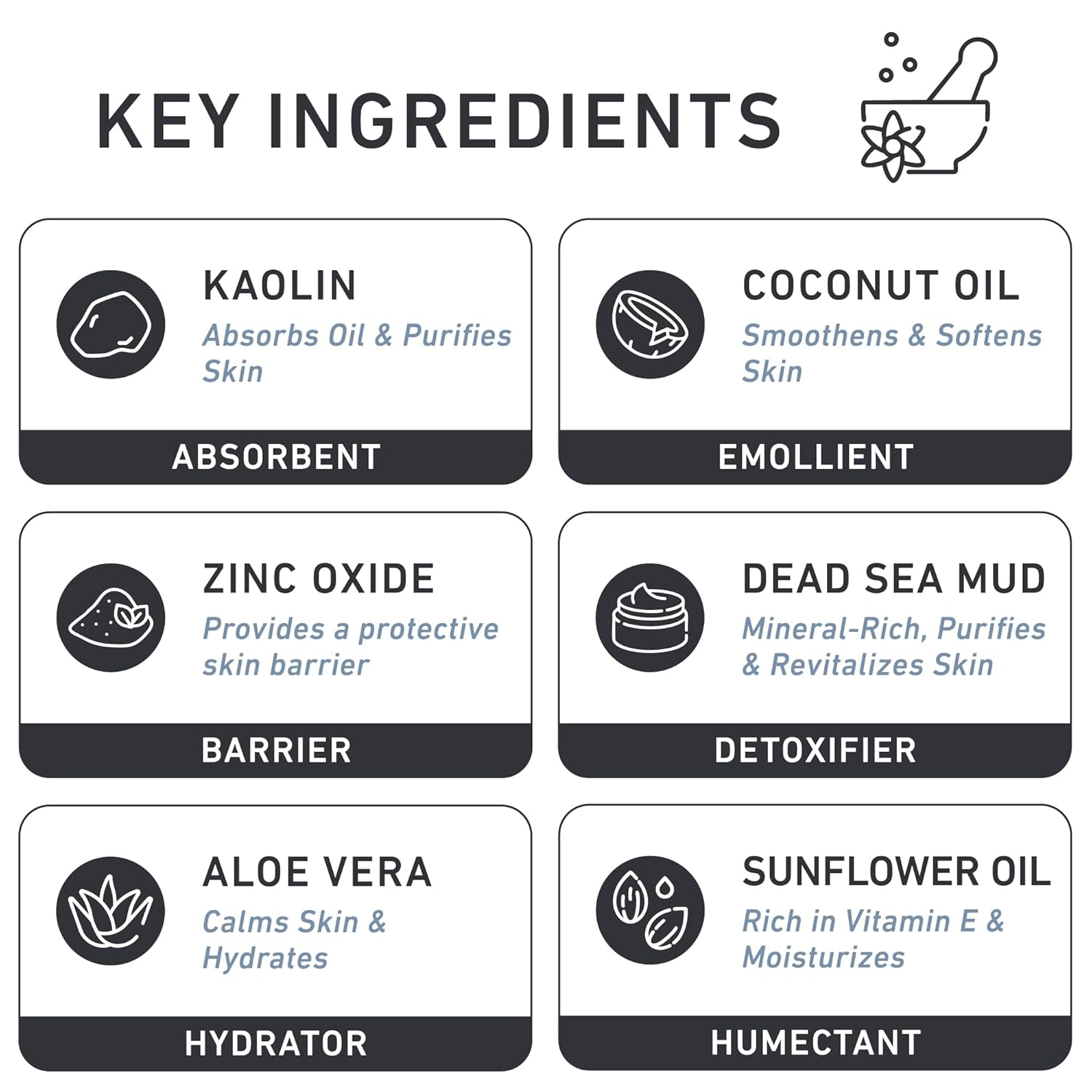 Dead Sea Mud is known to gently exfoliate the skin, drawing out excess oil which helps unclog pores.