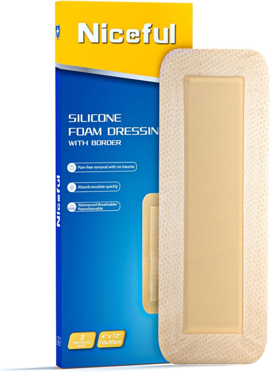 【Upgrade Material, More Comfortable】The upgraded silicone foam dressing with border is softer, enabling it to adhere perfectly to the wound surface, Absorb 15 times the amount of wound fluid. Silicone helps reduce skin irritation, lowers the risk of allergic reactions, and can be painlessly removed, ensuring your wound receives meticulous care, the first choice product for wound care.