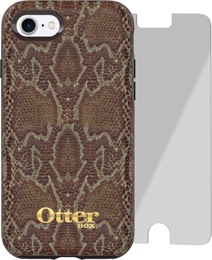 OtterBox Strada Series Limited Edition + Alpha Glass Case for iPhone 7 (ONLY) – Retail Packaging – WOODED Serpent (Dark Brown/Dark Snake Skin)