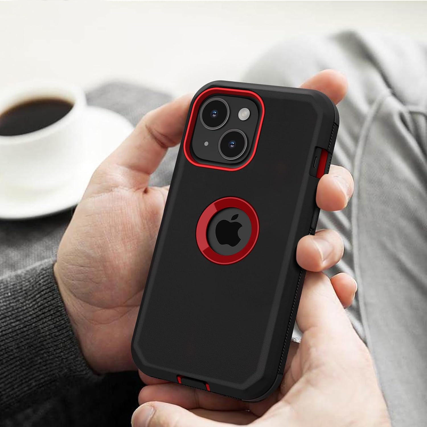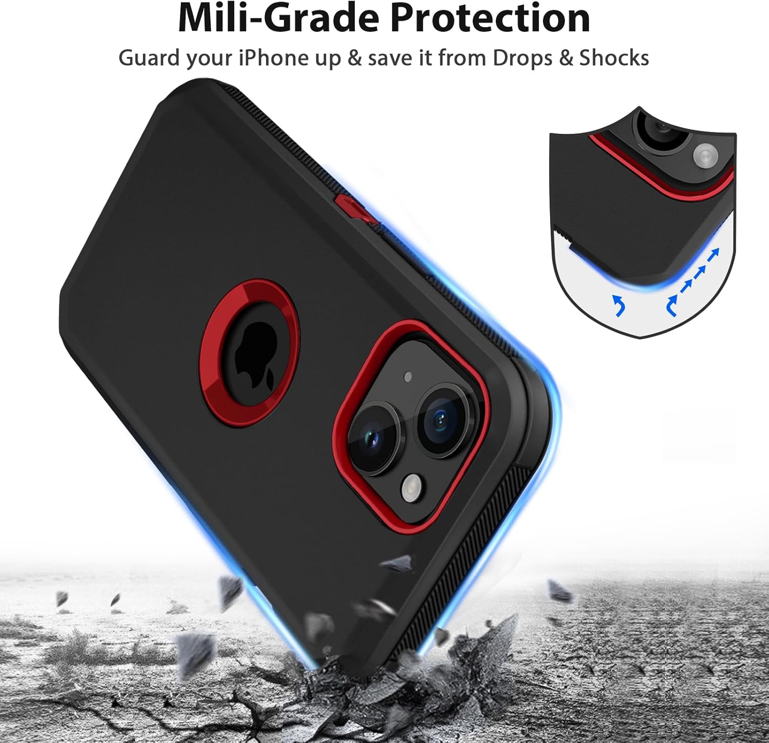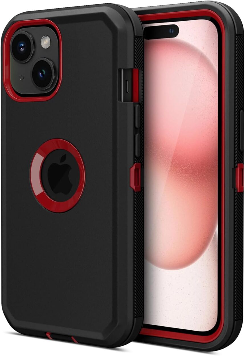 Jiunai for iPhone 15 Case, Heavy Duty Drop Protection Screenless Dual Layer Shockproof Rugged Tough Bumper Dust Proof Phone Case Compatible with iPhone 15 6.1 inches 2023 Released – Black Red